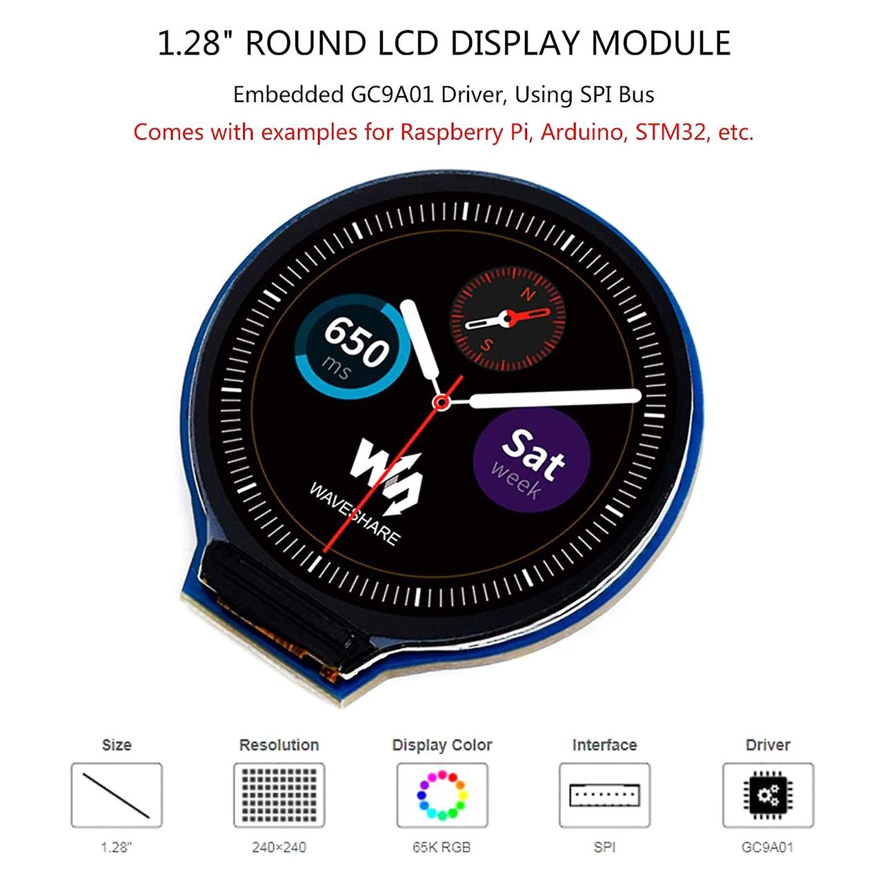 Especificação: Material: Abs Cor: Preto Interface De Comunicação: Spi De 4 Fios Tamanho Da Exposição: 32.4mm Placa De Exibição: Spi Chip De Controle Principal: Gc9a01 Tamanho Da Tela: 1.28 (polegadas) Cor: 65k Cor Resolução: 240240 Pixels Tempo De Resposta: 1 (ms) Ângulo De Visão: 240240 () Tensão De Funcionamento: 3.3v/5v