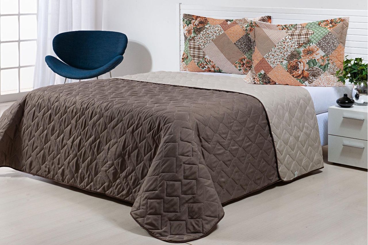 1 Cobre Leito Queen 3 Peças Microfibra Dupla Face Patchwork Cáqui