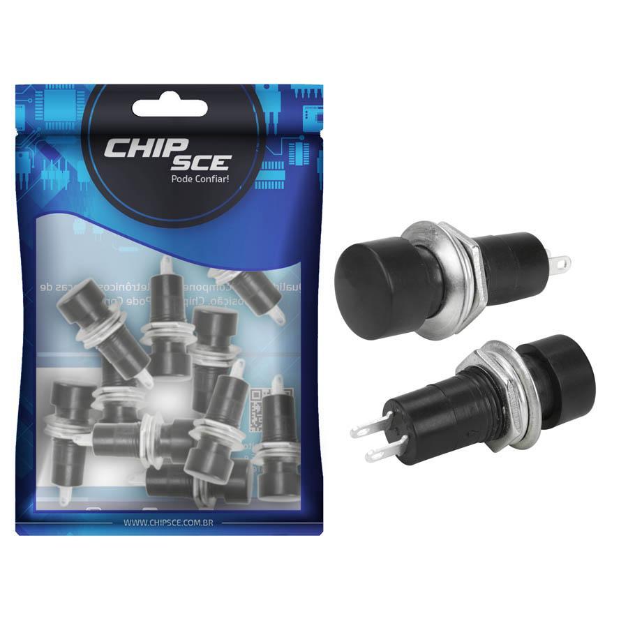 Chave Push Button C/trava PSB-16A Preto - 2 Terminais