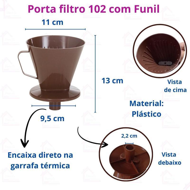Kit 2 Coador Filtro Moka Permanente + Porta Filtro Com Funil Variação: 102 E 103 Atenção: Você Deve Selecionar A Variação De Acordo Com A Medida Desejada, O Kit Contém 2 Filtros Iguais E 1 Porta Filtro. Leve Mais Praticidade, Economia E Sustentabilidade Para A Sua Cozinha Com O Kit Coador Moka Ideal Para Preparar Aquele Café Fresquinho A Qualquer Hora Do Dia, Esse Kit Vem Com Filtros Permanentes E Um Porta Filtro Com Funil Acoplado, Facilitando O Uso E Garantindo O Encaixe Perfeito Na Sua Garrafa. Destaques Do Kit: - Filtros Reutilizáveis Em Feltro Sintético (tnt) - Mais Economia E Menos Resíduos. - Funil Integrado Ao Suporte - Praticidade No Encaixe E No Uso. - Design Compacto E Funcional - Fácil De Guardar E Usar Em Qualquer Ambiente. - Limpeza Simples - Basta Descartar O Pó E Enxaguar O Filtro. Modo De Uso: - Posicione O Filtro Moka No Porta Filtro. - Adicione O Café De Sua Preferência E Despeje A Água Quente. - Após O Uso, Descarte O Pó E Lave O Filtro Com Água Corrente. - Pronto Seu Filtro Está Limpo E Pronto Para O Próximo Café. Especificações Do Produto: Filtro Moka Permanente 103: - Diâmetro: 13,8 Cm - Profundidade: 15 Cm - Material: Feltro Sintético De Polipropileno (tnt) Porta Filtro Com Funil 103: - Altura: 13 Cm - Diâmetro Da Boca: 13,5 Cm - Diâmetro Da Base: 12 Cm - Material: Plástico Resistente Medidas Do Filtro 102: - Diâmetro: 12,5 Cm - Profundidade: 11,5 Cm - Material: Feltro Sintético De Polipropileno (tnt) Medidas Do Porta Filtro 102: - Altura: 13 Cm - Diâmetro Da Boca: 11 Cm - Diâmetro Da Base: 9,5 Cm - Material: Plástico Resistente Conteúdo Da Embalagem: - 2 Filtros Moka Permanente 103 - 1 Porta Filtro Com Funil Acoplado 103 Ou - 2 Filtros Moka Permanente 102 - 1 Porta Filtro Com Funil Acoplado 102