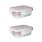 2 Potes De Vidro Diamond Retangular 370ml Vermelho Hermético