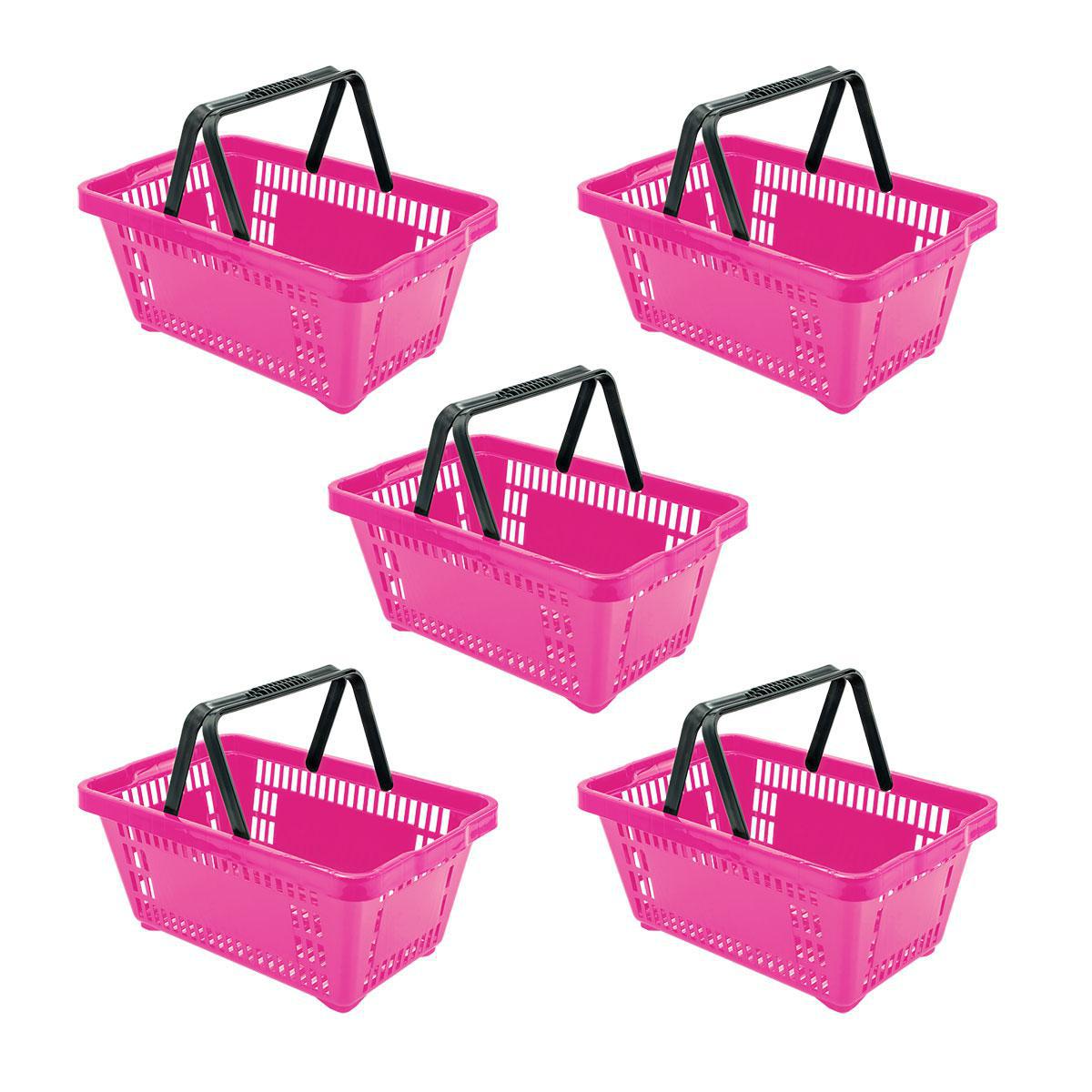 - 5 Cestos Compras Plástica D100 Rosa - Della Plast
