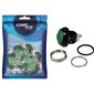 Possui um corpo metálico de 12mm de diâmetro, com um botão verde que se ilumina quando acionado.