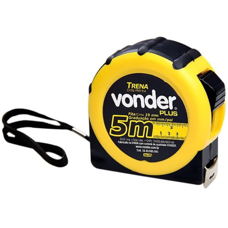 Fabricante: STANLEY.Código do Produto: STHT33989840.Produto Importado..Trena Métrica Básica 5m (Stanley STHT33989840).¿ Cinta métrica com botão de trava..¿ Gancho trava zero absoluto que permite maior precisão..¿ Mola do mecanismo interno tratada a calor para maior vida útil..¿ Cinta recoberta com Nylon..¿ Lâmina com 19mm de largura e 5 metros de comprimento.