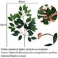 Apresento o Galho de Folhagem Fícus Artificial, confeccionado em plástico e arame. Este produto possui dimensões de 55 cm de altura e 45 cm de largura, que podem ser ajustadas conforme a sua necessidade. O galho é composto por 3 hastes e aproximadamente 42 folhas permanentes, com medidas variadas. A maior folha mede 9 cm de altura e 4 cm de largura. As folhas artificiais têm uma cor verde vibrante, enquanto o ramo apresenta uma tonalidade marrom realista. A haste flexível permite mudanças de forma, e o acabamento de alta qualidade garante a durabilidade do produto.