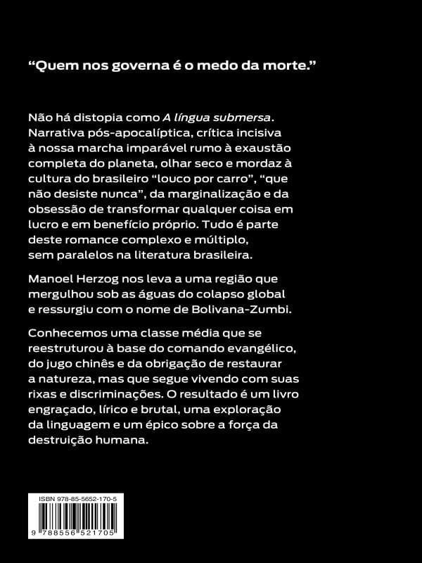este É Um Romance Complexo E Múltiplo, Sem Paralelos Na Literatura Brasileira. Após Uma Catástrofe Ambiental, A América Latina, Ou O Que Sobrou Dela, É Agora A Nação Bolivana-zumbi, O “gigante Dócil E Inofensivo” Onde A Moeda Se Chama Bênção E O Poder Dominante, Fantoche Dos Desígnios Chineses, É A Eclésia, Gerida Pela Igreja Evangélica Bola De Fogo. Aqui A Natureza É A Principal Preocupação: É Expressamente Proibido Desmatar E Caçar Animais Silvestres, E Os Infratores Pagam Com A Morte. Em Bolivana-zumbi Se Fala O Portunhol, Pois O Português Se Tornou A Língua Submersa — E Proibida.