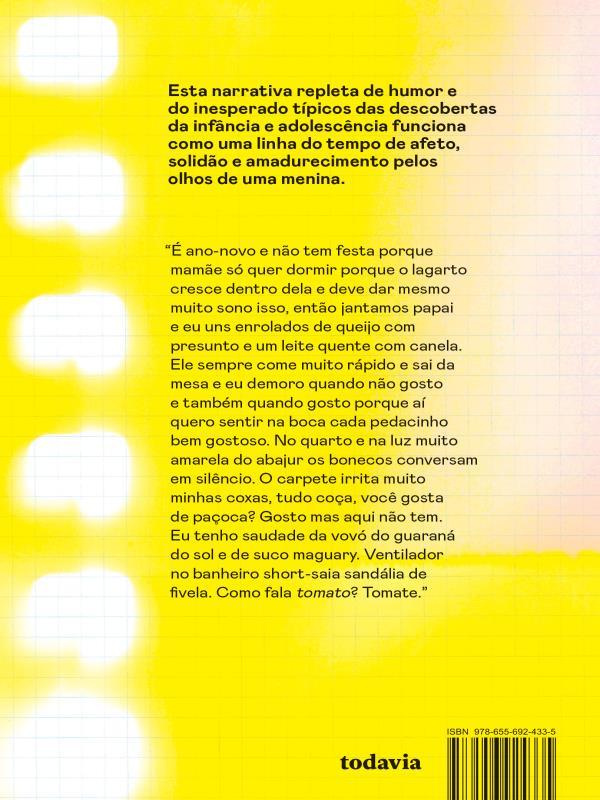 Neste Romance Formado Por Memórias Reais E Inventadas, Carol Rodrigues Conduz O Leitor Pelos Momentos De Desbravamento E Introspecção Que Acompanham O Amadurecimento De Lina, Uma Menina Ocupada Em Observar O Que Acontece E O Que Não Acontece Ao Seu Redor. Um Prato Cheio De Nostalgia Para Quem Cresceu Na Década De 1990, Com Referências Inescapáveis E Memórias (tão Deliciosas Quanto Constrangedoras) Que Podem Ser Compartilhadas Entre Muitos De Nós.