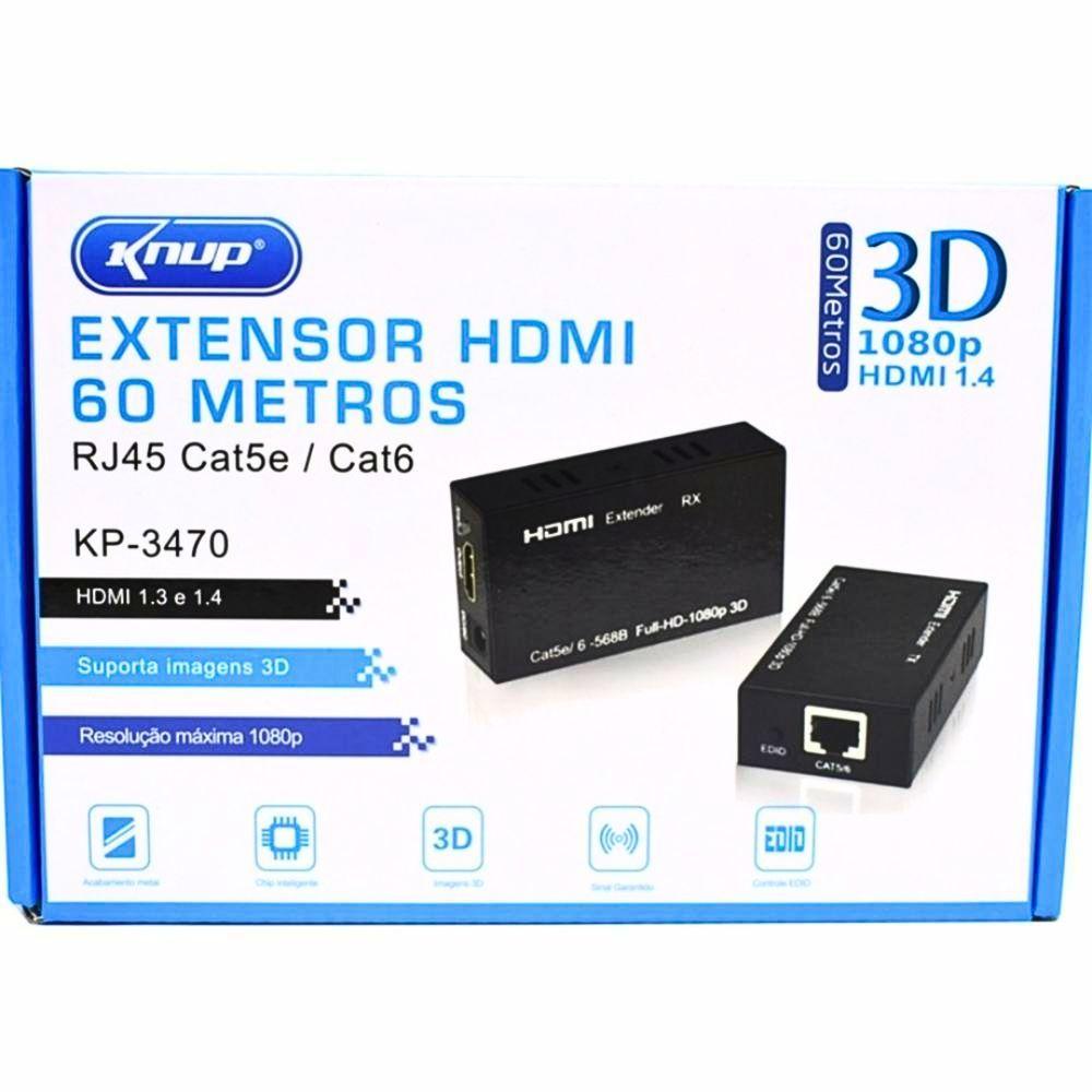 Adaptador Extensor Hdmi 60 Metros Kp-3470 Descrição Extensor Hdmi 60 Metros X Rj45 Cat5/ Cat6 3d 1080p Bivolt O Hdmi Extender Possibilita A Extensão Do Sinal Hdmi De Até 60 Metros Com Qualidade Full Hd (1080p) Via Cabo Cat 5e Ou Cat 6 Rj45 - O Mesmo Cabo De Rede Usado Em Pcs. Suporta Ainda A Extensão Via Cabos Hdmi Num Total De 10 Metros (com 5 Metros Na Entrada E 5 Metros Na Saída). Trabalha Como Amplificador De Sinal, Permitindo Conectar Cabos Hdmi De 10 Metros Em Sua Entrada E Na Saída. Características: Extensão Até 50 Metros Usando Cat 6. Extensão Até 20 Metros Usando Cat 5e. Extensão Até 10 Metros Usando Cabo Hdmi: 5 Metros Na Entrada E 5 Metros Na Saída. Suporte Hdmi 1.3 E 1.4. Suporte Até 1080p Resolução De Vídeo. Suporte 165 Hz/1,65 Gbps/frame Taxa (total Taxa De Quadros 4.95gbps) Largura De Banda. Suporta 8 Bits Por Frame (moldura 24 Total) Dark. Áudio Apoio Descompactado Com Duas Taxas De Quadros: Lpcm. Especificações: Entrada Sinal De Vídeo: 0,5-1,0 Volts Pp, 0,1. 0 Volts Pp. Saída De Vídeo: Hdmi 1.3b. Resolução Hdmi: 24/50/60fs/1080p/1080i/720p/576p/576i/480p/480i. Distância De Transmissão: Cat 6 1080p 60 Metros. Vídeo Amplificador Banda 5: 1.65gbps/165 Hz. Faixa De Frequência Vertical 6: 50/60 Hz. Dimensões Aprox.: 85 X 58 X 24 (cada). Peso Aprox.: 90g. (cada). Operação: 1 - Conectar O Sinal Hdmi Na Entrada (como Hd, Dvd, Ps3, Ht, Xbox) Ao Transmissor. 2 - Conectar Um Cat-5e/6 Para O Transmissor De Saída E A Entrada Do Receptor. 3 - Ligar O Receptor Saída Para A Exibição. 4 - Conectar As Fontes Na Rede Elétrica E Liga-las No Transmissor E Receptor. Atenção: Cabos Hdmi, Cat5e, Cat6 Não Inclusos. Itens Incluso: 1 Hdmi Extender Receptor 1 Hdmi Extender Transmissor 2 Fontes Bivolt 1 Manual Adaptador Extensor Hdmi 60 Metros Kp-3470 -características Gerais Do Produto:garantia:- 90
