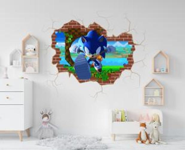 Adesivo De Parede Buraco Falso Sonic Mod01