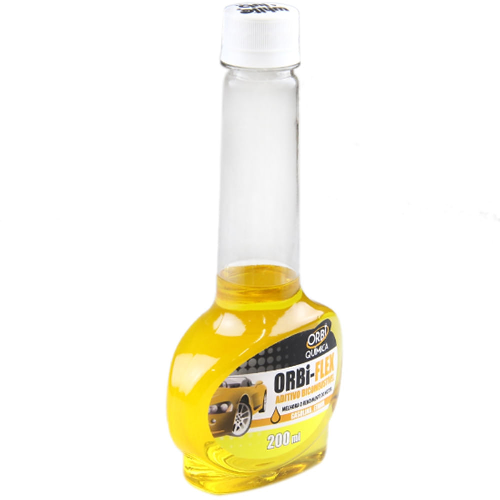 ADITIVO PARA COMBUSTÍVEL – MOTORES FLEX foi especialmente desenvolvido para aditivação de motores a álcool, gasolina e suas misturas..Seus ativos inibem a ação corrosiva do álcool e melhora a queima do combustível, lubrifica anéis e válvulas e auxilia na limpeza dos bicos injetores..Reduz a emissão de gases poluentes, o consumo de combustível e facilita as partidas a frio.. .Aplicação:..Indicado para o uso em motor bicombustível ( gasolina/álcool ) proporciona limpeza e lubrificação ao sistema de alimentação de combustível do motor, facilita as partidas a frio, promove a remoção de depósitos dos filtros e bombas de combustível, reduz a ação corrosiva do álcool, equilibra a mistura gasolina/álcool, lubrificante válvulas e anéis e auxilia na redução de gases poluentes.. .Instruções de Uso:..Recomendado a cada abastecimento atuando de forma preventiva ou após reparos e limpeza no sistema de injeção de combustível do veículo. Adicione primeiro o Aditivo FLEX Orbi no tanque de combustível e depois complete com gasolina, álcool ou suas misturas. 200 ml do produto ( um frasco ) aditiva até 40 litros de combustível, acima desse volume é recomendado à utilização de 02 frascos ( 400 ml )..1º Adicione o ADITIVO..2º Adicione o combustível, para que ocorra uma mistura perfeita.