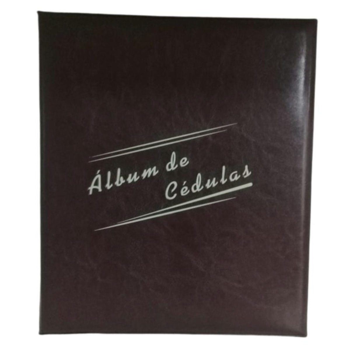 Álbum Acolchoado Grande Marrom Para 60 Cédulas 3 Argolas..Apresentamos lindo álbum para colecionadores de cédulas, para organizar e armazenar suas cédulas...Descrição Técnica .Dimensões: 31 cm comprimento x 28cm largura x 5cm altura.Folhas: 10 folhas em pvc com 03 espaços acompanha cartolina preta, utilizando a folha frente e verso cabem até 6 cédulas por folha.Capa : couro sintético acolchoada com inscrição Álbum de Cédulas em baixo relevo..Cor: Marrom.Material Interno: sistema 3 argolas.Marca: Loja do colecionador