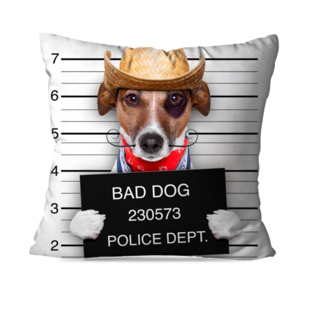 Almofada Avulsa Bad Dog 45X45cm - ...Características Gerais do Produto:.. Tamanho Almofadas: - 1 Almofada 45x45cm, - 1 Almofada 35x35cm. Tecido: 100% Poliester Oxford. Ziper: Invisível. Estampa: Digital de Alta Qualidade, Estampa frente e verso, Aplicado por Termotransferência. Enchimento: Fibra de Silicone. Conteúdo da Embalagem: - 1 Almofada com Enchimento. Gênero: unissex. Faixa etária: Acima de 13 anos...Garantia:.. Garantia contra defeito de fabricação