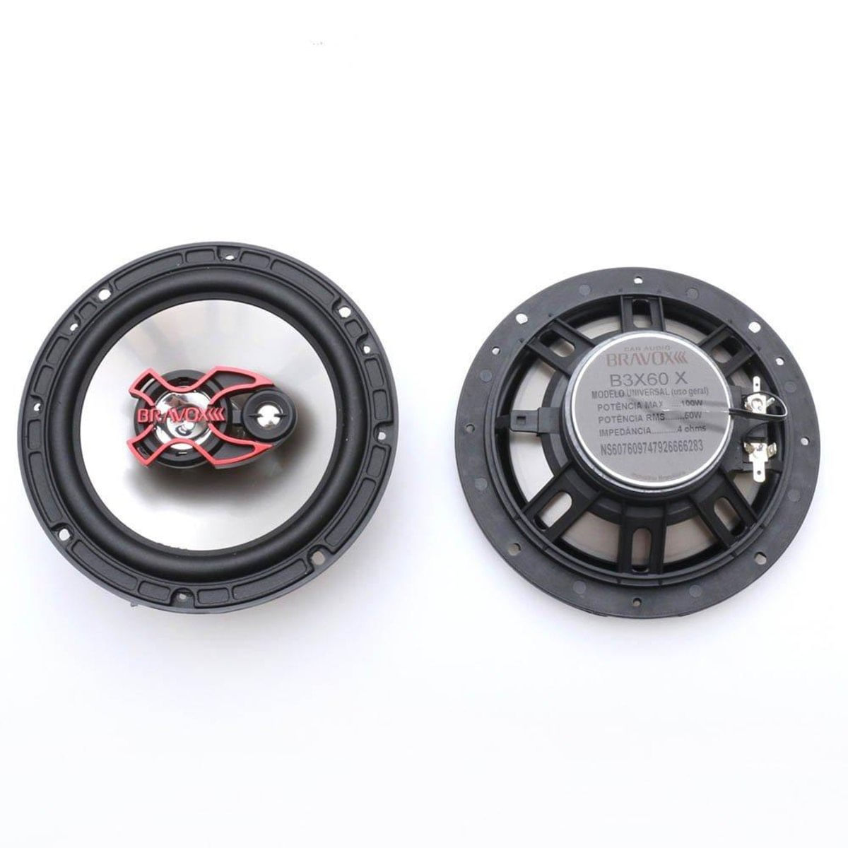 Os triaxiais B3X Bravox possuem design arrojado e inovador e se adaptam perfeitamente aos novos conceitos de carros Tunados, aliando potência, desempenho e durabilidade, De simples instalação, podem ser instalados em qualquer veículo com ou sem adaptação nas portas dianteiras, traseiras, tampão e painel, PRINCIPAIS CARACTERÍSTICAS - Polegadas: 6", - Impedância nominal: 4 ohms, - Sensibilidade: 89 dB/W/m, - Fo Hz: 85, - Resposta em freqência: 60 a 20K Hz, - Potência Máxima: 100 W máx, - Potência Nominal: 50 W rms, - Altura (mm): 53, - Diâmetro (mm): 165, - Cone injetado em polipropileno, - Bobina em corpo de alumínio, - Borda injetada em santoprene, - Ímã de fluxo magnético, - Tweeter Mylar e Midrange, CONTEÚDO DA EMBALAGEM 1 Par de alto falantes,
