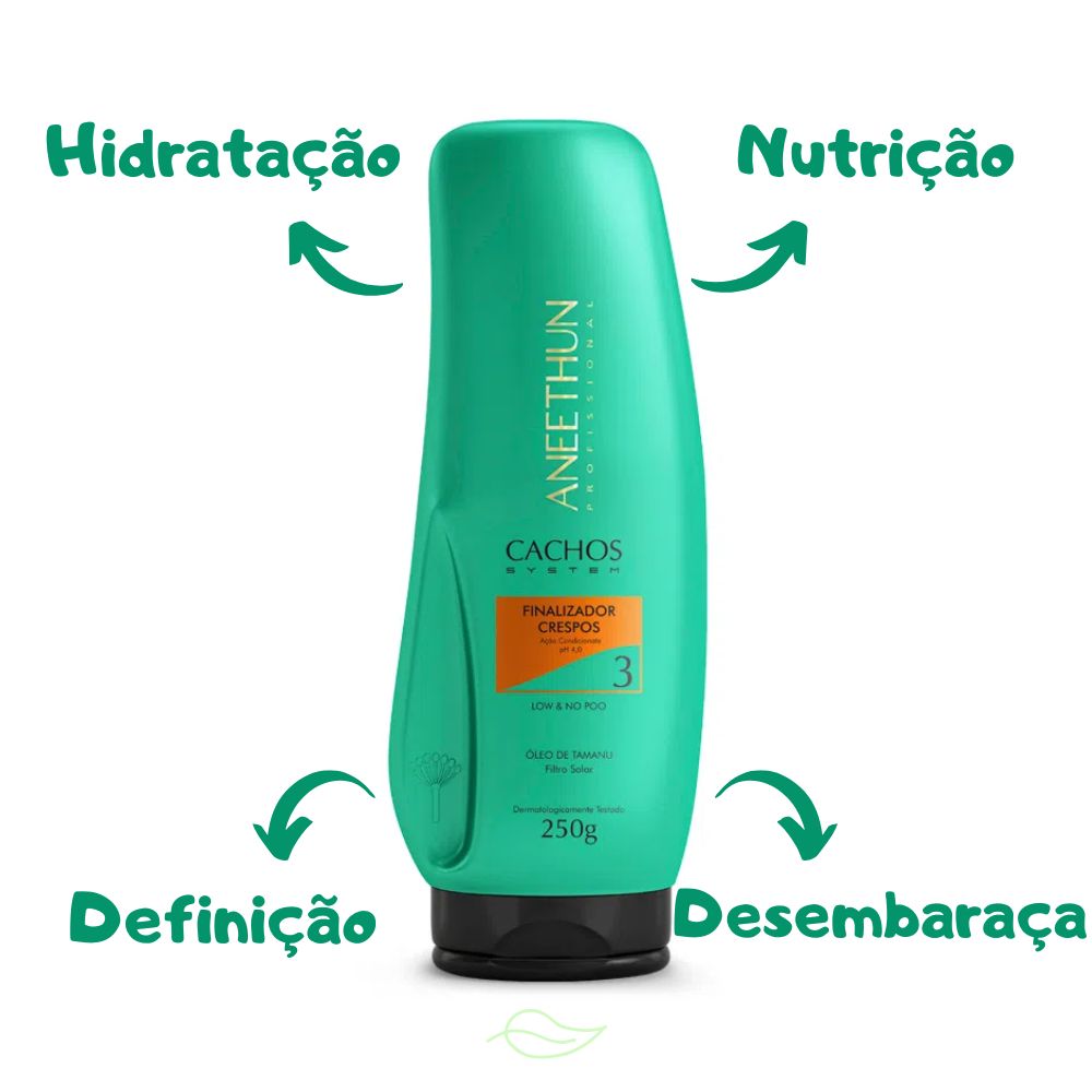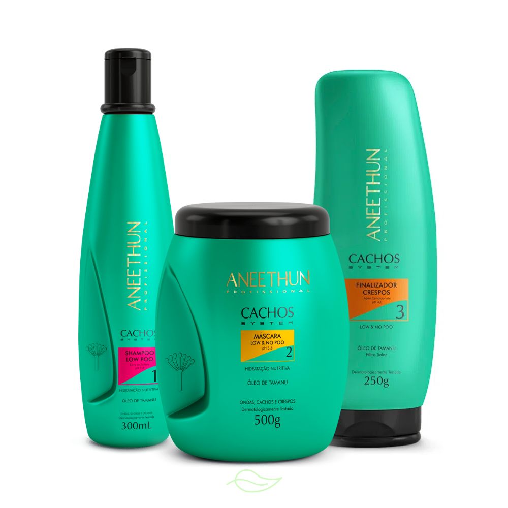 Conteúdo Da Embalagem1 Shampoo Low Poo Aneethun Cachos System 300ml1 Máscara Low & No Poo Aneethun Cachos System 500g1 Finalizador crespos Aneethun Cachos System 250gtratamento Intensivo Para Cabelos Cacheados, Liberado Para As Técnicas No/low Poo, Com Fórmula Livre De Sulfatos, Corantes, Petrolatos, Parabenos E Silicones. A Linha Cachos System Promove Limpeza Delicada, Condicionamento, Hidratação E Nutrição Profunda Dos Fios. Possui Ativos Como Óleo De Tamanu, Óleo De Coco E Repositores Lipídicos Que Agem De Dentro Para Fora, Reparando Os Fios E Restaurando Toda A Beleza E O Poder Dos Cachos.diferenciais- Limpeza Na Medida Certa- Emoliência, Hidratação E Facilidade No Desembaraço- Cabelo Forte E Nutrido- Retenção De Umidade- Dois Tipos De Produtos Para Higienização- Diversidade Em Finalizadores- Óleo Multifuncionalativosóleo De Tamanu: Altamente Nutritivo E Hidratante, Contém Ampla Variedade De Poderosos Ácidos Graxos Antioxidantes, Auxilia No Crescimento Saudável Do Fio.óleo De Coco: Possui Grandes Quantidades De Vitamina E, O Que O Torna Um Excelente Agente Antioxidante E Confere Alta Emoliência Aos Cabelos Com Sensorial Suave E Aveludado.repositores Lipídicos: Restauração De Dentro Para Fora, Força E Brilho.tipos De Cabelocacheados, Crespos E Ondulados