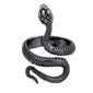 Anel Preto Prateado Cobra Ajustável Serpente Snake Punk Rock