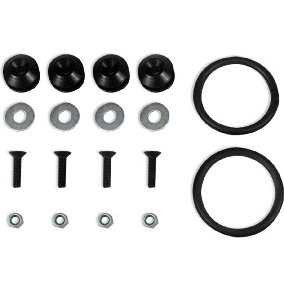 As anilhas são fabricadas em alumínio anodizado de alta durabilidade, proporcionando uma ótima fixação além de um design esportivo. Este produto é universal e é ideal para carros rebaixados por pressionar o para-choque de modo que o mesmo se alinhe e mantenha sua fixação garantindo maior durabilidade ao para-choque e seguranças as travas internas deste componente.Importante: Para instalação deste produto é necessário a perfuração no local. é necessário atentar-se antes de realizar o furo.ESPECIFICAÇÃO TÉCNICA- Cor Preto,- Feito em Alumínio,- Aplicação Universal - Ideal para Rebaixados,- Alta Resistência- Visual Esportivo e Acabamento Excelente,- Fixa prevenindo danos as travas do para-choque,- Fácil Instalação,- Produto com Furação,- Acompanha O-Ring de Alta Resistência.CONTEÚDO DA EMBALAGEM- 4 Fixadores de alumínio anodizado,- 4 Parafusos de aço,- 4 Porcas alto travante- 4 Arruelas,- 2 Anéis O-Ring de alta resistência.ATENÇÃO- A empresa não se responsabiliza pela má instalação do produto.- Procure por um profissional especializado!