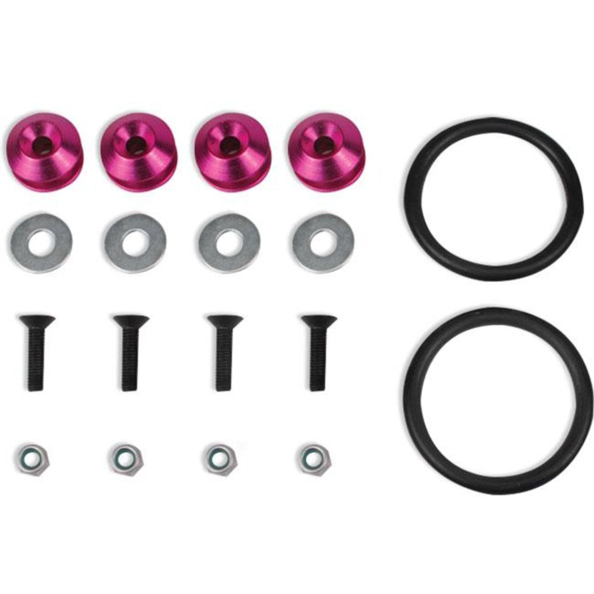 As anilhas são fabricadas em alumínio anodizado de alta durabilidade, proporcionando uma ótima fixação além de um design esportivo. Este produto é universal e é ideal para carros rebaixados por pressionar o para-choque de modo que o mesmo se alinhe e mantenha sua fixação garantindo maior durabilidade ao para-choque e seguranças as travas internas deste componente.Importante: Para instalação deste produto é necessário a perfuração no local. é necessário atentar-se antes de realizar o furo.ESPECIFICAÇÃO TÉCNICA- Cor Roxo,- Feito em Alumínio,- Aplicação Universal - Ideal para Rebaixados,- Alta Resistência- Visual Esportivo e Acabamento Excelente,- Fixa prevenindo danos as travas do para-choque,- Fácil Instalação,- Produto com Furação,- Acompanha O-Ring de Alta Resistência.CONTEÚDO DA EMBALAGEM- 4 Fixadores de alumínio anodizado,- 4 Parafusos de aço,- 4 Porcas alto travante- 4 Arruelas,- 2 Anéis O-Ring de alta resistência.ATENÇÃO- A empresa não se responsabiliza pela má instalação do produto.- Procure por um profissional especializado!