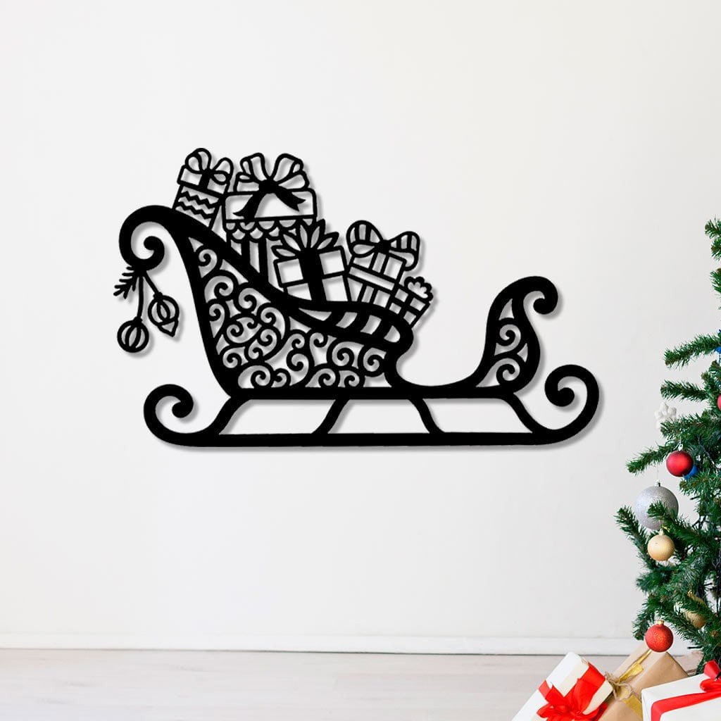 Aplique De Natal Vazado Em Mdf Trenó Com Presentes