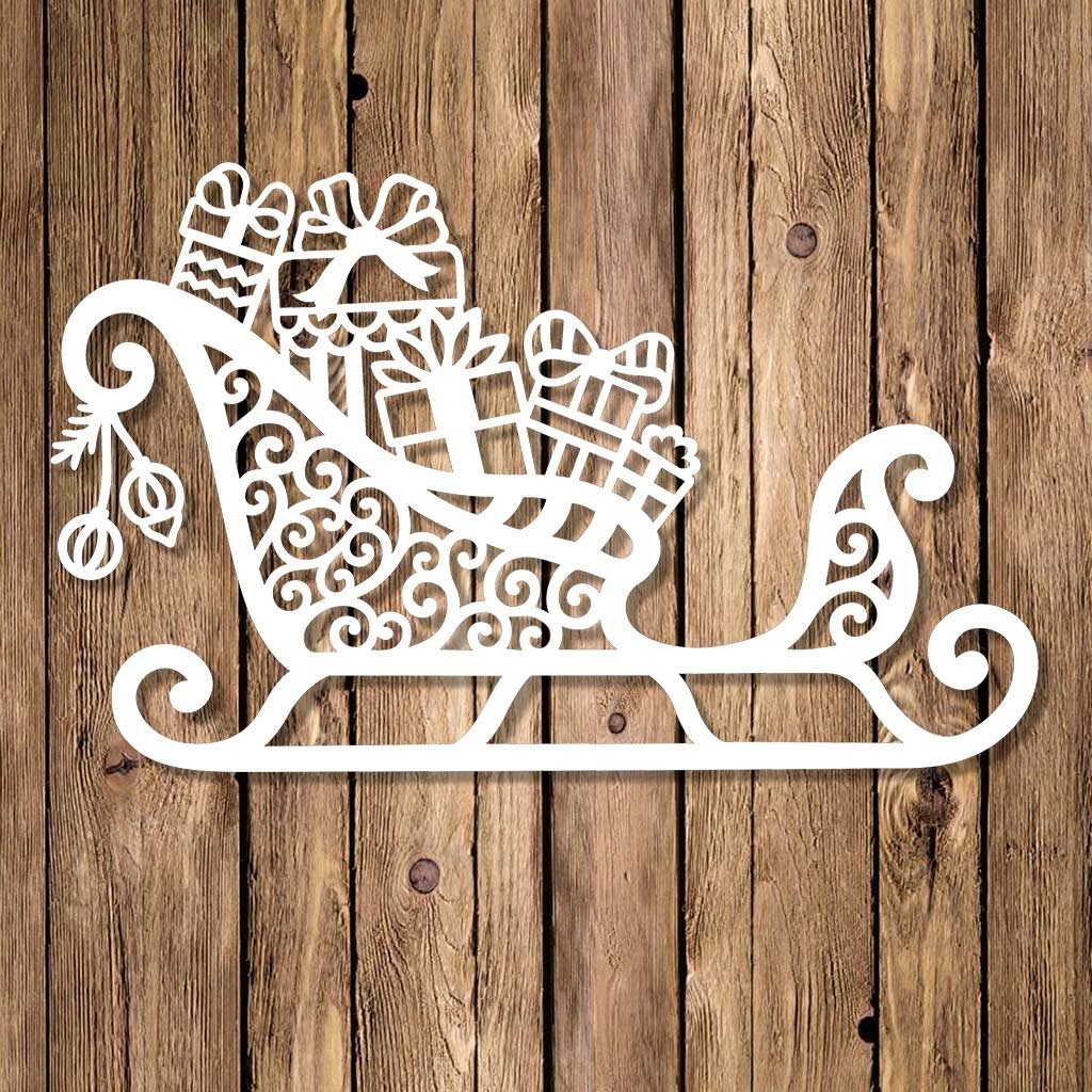 Aplique De Natal Vazado Em Mdf Trenó Com Presentes