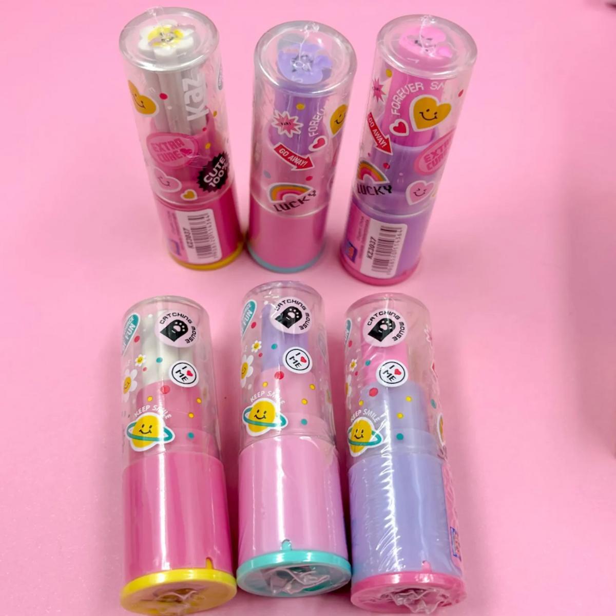 Apontador Coletor Com Borracha Colorida Formato De Batom Kaz