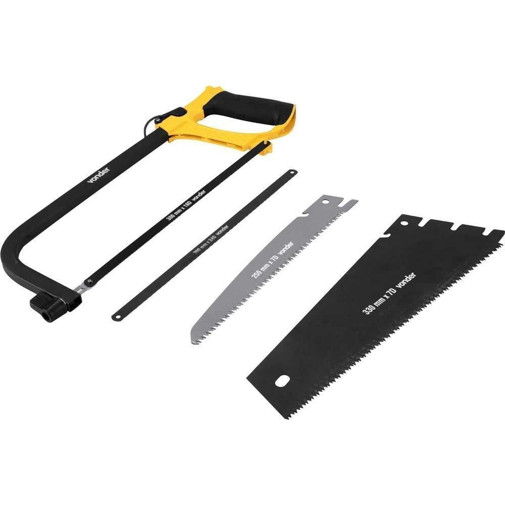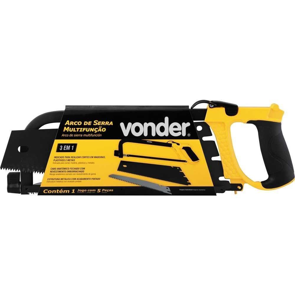 Arco De Serra Multifuncao 3 Em 1 Vonderconteúdo Da Embalagem:1 Arco De Serra. Acompanha: 1 Lâmina Serrote Para Madeira, 1 Lâmina Serrote Para Poda, 1 Lâmina Serrote Bimetálica Para Metal E 1 Lâmina Serrote De Aço Para Plástico.possui Cabo Anatômico Fechado Com Revestimento Emborrachado, Fornecendo Maior Conforto Ao Usuário. Estrutura Metálica Com Acabamento Pintado, Proporcionando Maior Proteção Contra Oxidação/corrosão. Conta Com Sistema Multifunção, Permitindo A Utilização Em Diversos Trabalhos.indicado Para Realizar Cortes Em Madeiras, Plásticos E Metais.garantia Legal: 90 Diasmedida Da Lâmina Do Arco De Serra: 12 - 300 Mmtipo De Cabo: Fechadomaterial Da Estrutura Do Arco De Serra: Metálicomaterial Do Cabo: Metálico, Com Revestimento Emborrachadotipo De Ajuste Do Arco De Serra: Regulávelmassa Aproximada (peso): 0,76 Kg Tipo De Serrote: Arco De Serra
