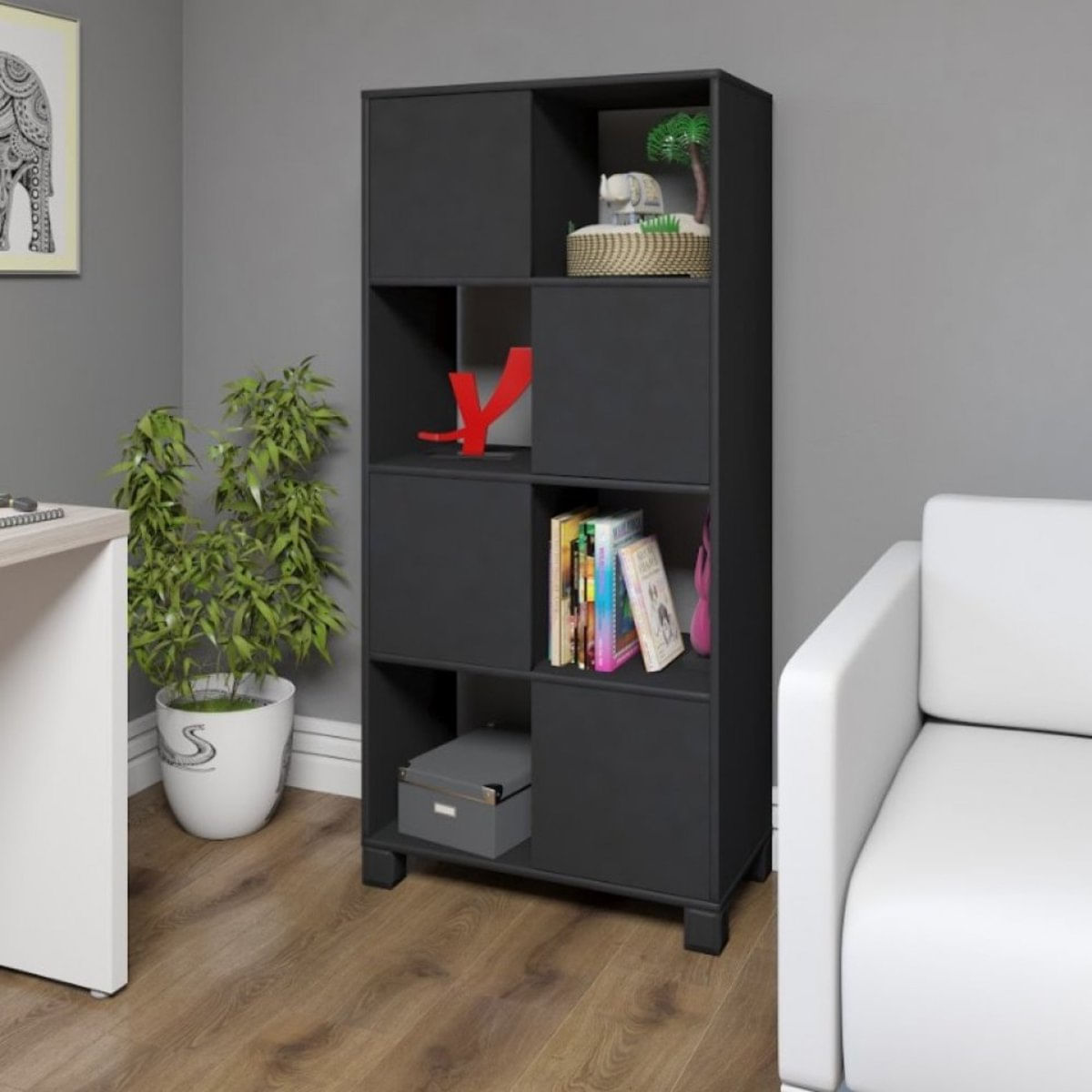 O Armário Wally da Artany é uma excelente opção para sala, quarto ou escritório. Seus nichos vazados intercalados com portas de abertura lateral e seus pés lineares e robustos conferem um design arrojado ao ambiente. Produzido em MDP de 15 mm e revestimento em FF. Característica: Estrutura em MDP 15 mm de espessura com fita de borda PVC com 0,45 mm de espessura Sapatas plásticas Acabamento: FF Fixação com tambor, parafuso minifix e parafusos Capacidade de carga: 5 Kg distribuídos Escala de brilho: Fosco Recomendações de limpeza e manutenção: Limpeza com pano levemente umedecido. Produto desmontado (necessita de montagem): Sim Complexidade da montagem: Fácil Fábrica possui manual de montagem: Sim Dimensões: Altura: 145 cm Largura: 67 cm Profundidade: 36 cm Peso: 33 kg Garantia do Fornecedor: 3 meses