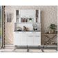 O Armário de Cozinha Gabi é ideal para quem deseja praticidade e funcionalidade em qualquer ambiente. Com design compacto e uma excelente disposição interna, traz na sua composição 08 portas sendo 02 com vidro, 01 gaveta com corrediça metálica deslizante, espaço para micro-ondas ou demais aparelhos de utilidade doméstica, prateleira e nicho organizador decorativo dando um charme especial à peça. Produto com pés reguláveis fabricado em MDP que garante a qualidade que só a Poliman oferece em seus produtos.