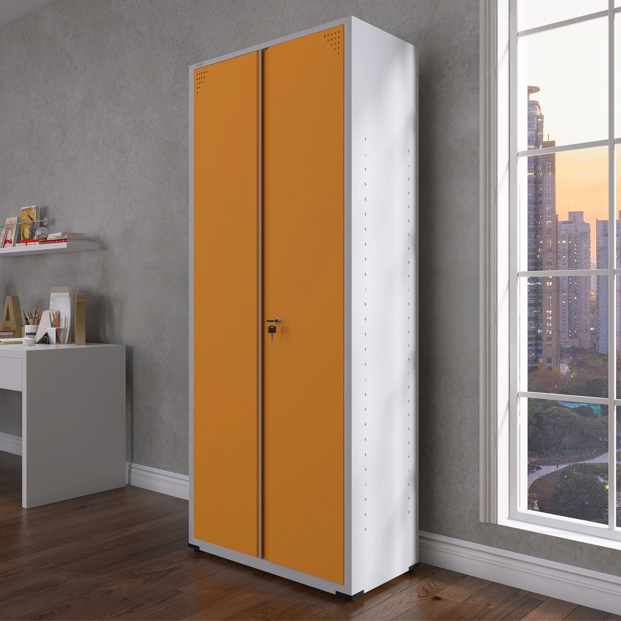 Armário 2 Portas Aço 4 Prateleiras Ap409sl Pandin Móveis Cinza/laranja Picasso.