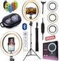 Kit Iluminador Ring Light + Tripé 2,10m + Controle Bluetooth