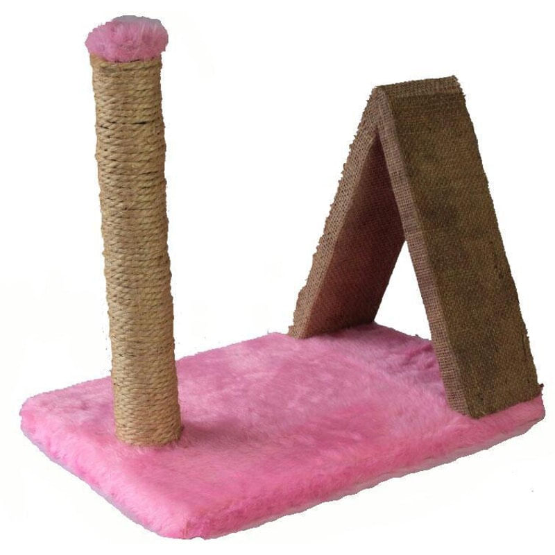 Arranhador Mini poste com Triângulo, é o produto ideal para seu gatinho arranhar. .Produto em madeira de compensado naval, revestido com pelúcia anti-alérgica de primeira linha, sisal e juta natural. .Possui um design diferenciado, moderno e elegante. .Permite ao gato brincar e arranhar, deixando a brincadeira ainda mais atrativa....Ficha técnica.- Cor principal: Rosa.- Com brinquedo: Sim.- Material do estofado: Pelúcia.- Material do arranhador: Madeira.- Largura: 35.- Comprimento: 23.- Com casa: Não..Medidas aproximadas do produto.- Comprimento: 23 cm.- Altura: 30 cm.- Largura: 35 cm.- Peso: 2 kg
