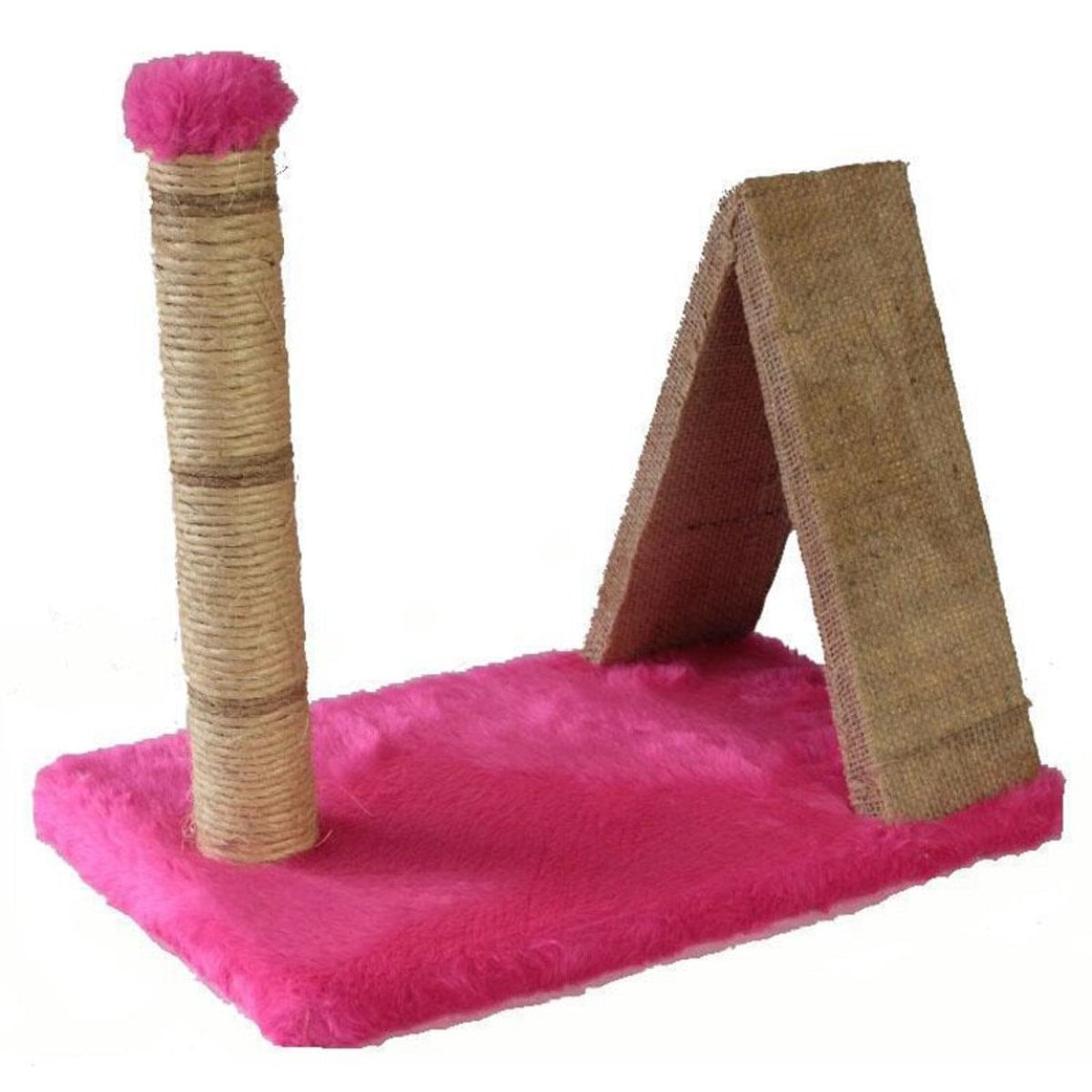 Arranhador Mini poste com Triângulo, é o produto ideal para seu gatinho arranhar. .Produto em madeira de compensado naval, revestido com pelúcia anti-alérgica de primeira linha, sisal e juta natural. .Possui um design diferenciado, moderno e elegante. .Permite ao gato brincar e arranhar, deixando a brincadeira ainda mais atrativa....Ficha técnica.- Com casa: Não.- Largura: 35.- Cor principal: Rosa.- Material do arranhador: Madeira.- Comprimento: 23.- Com brinquedo: Sim.- Material do estofado: Pelúcia..Medidas aproximadas do produto.- Comprimento: 23 cm.- Altura: 30 cm.- Largura: 35 cm.- Peso: 2 kg