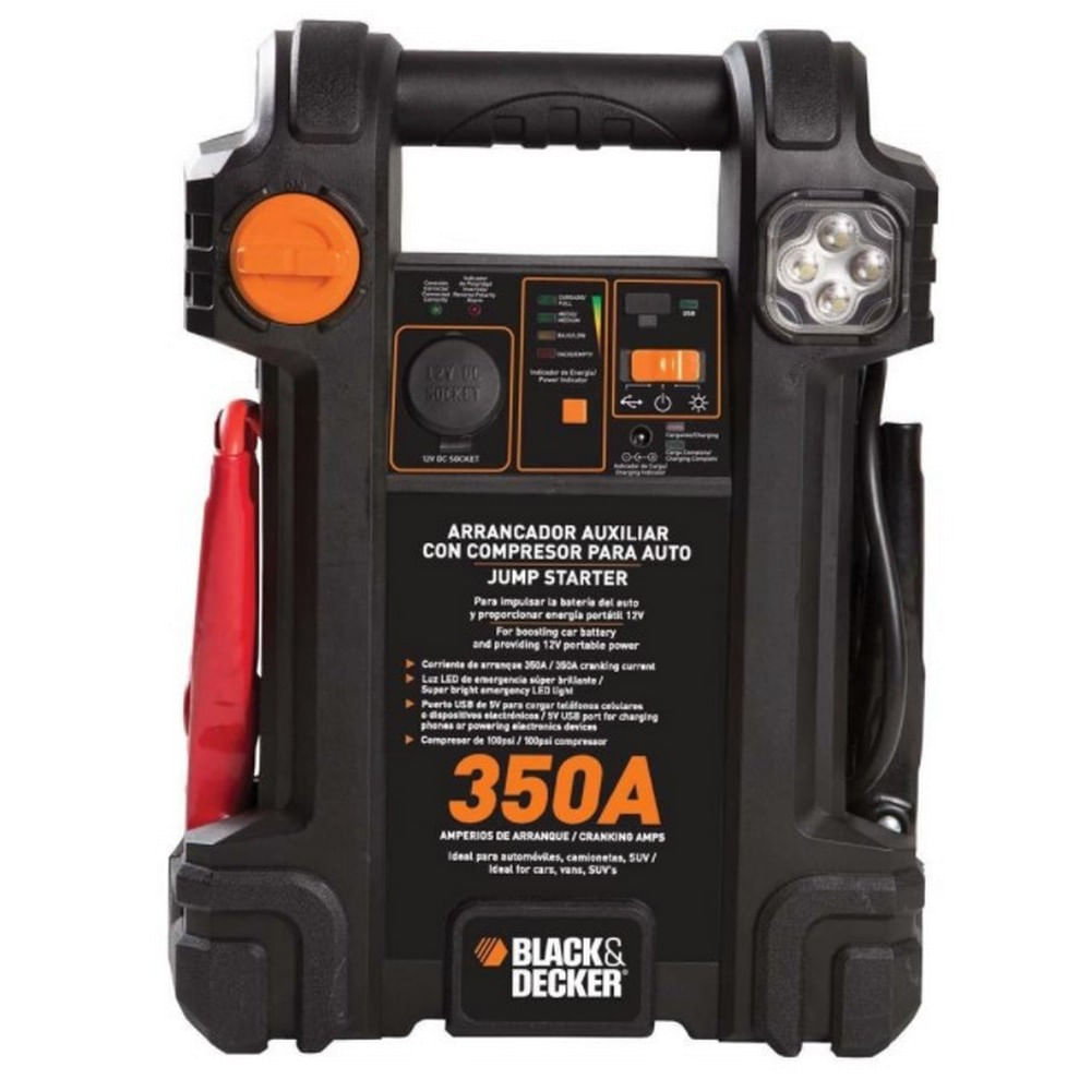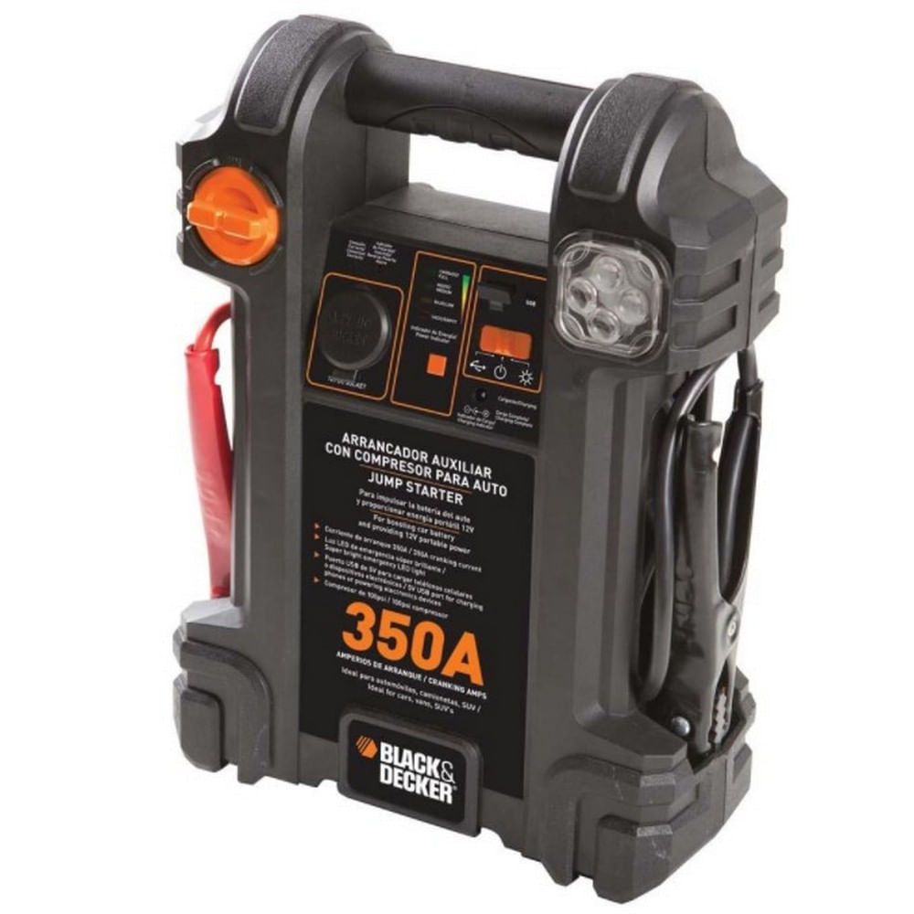 Leve Um Aparelho Que Será Extremamente Útil Durante Seus Passeios De Carro Ou Viagens. O Js350cc Conta Com Bateria Interna E Pode Ser Utilizado Para Dar Partida Em Seu Veículo Em Situações De Emergência Com Sua Saída Cc De 13,5v. Ele Conta Com Porta Usb 5v Para Equipamentos Eletrônicos, Permitindo Que Você Carregue Algum Dispositivo Emergencialmente E Com Muita Praticidade. Ele Vem Ainda Com Um Conjunto De Mini Lâmpadas Led Para Auxiliar A Visualização De Sua Manutenção Quando A Luminosidade Não For Favorável. Seu Compressor De 100 Libras Será Perfeito Para Inflar Pneus E Utilizar Com Equipamentos Esportivos. Você Terá Um Equipamento Com Muita Utilidade Para Todos Os Momentos. Tenha Mais Segurança E Tranquilidade No Seu Dia A Dia. Escolha Black + Decker. Características Gerais: Ideal Para Pneus De Veículos, Equipamentos Esportivos Entre Outras Opções Energia Portátil - Fonte De Alimentação 12v Dc Aciona E/ou Recarrega Equipamentos De Cc De 12v Porta Usb 5v 500ma Para Recarregar Equipamentos Eletrônicos 4 Mini Lâmpadas Led De Emergência Ultra Brilhante Saída Cc De 13,5v - 350a Bateria 12v - 7ah Terminais Selados Compressor: 100 Psi (libras) Fios E Abraçadeiras Fusível: 15a Saída (instântanea): 350a Saída (constante): 0a Portátil: Sim Pressão Máxima: 100 Libras Reservatório De Ar: Não Possui Compressor Inflador De Pneus Integrado Com 100 Psi Conteúdo Da Embalagem: 1 Aparelho Js350cc Black + Decker Garantia Do Fornecedor: 12 Meses