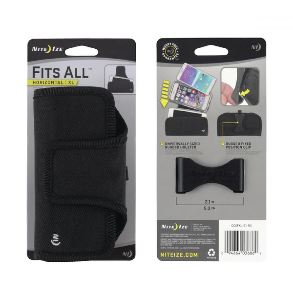 Bainha Nite Ize ajustável horizontal extra grande. Possui clip para prender no cinto ou calça. Compatível com a maioria dos modelos de celular, com ou sem case/capa.- Clip que encaixa em cintos, calças, faixas, etc de até 5,4cm- Dimensões (cm): 15,7 x 8,3 x 4,5- Peso (g): 50Para ver uma tabela de compatibilidade com os modelos de celular mais populares no mercado, acesse: https://www.lince-imports.com.br/downloads/Nite%20Ize%20-%20Compatibility%20Chart%20for%20Mobile%20Holsters.pdf.
