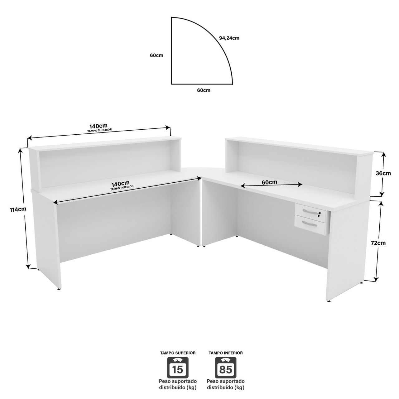 Balcão Atendimento De Canto Para Recepção 2 Gavetas .