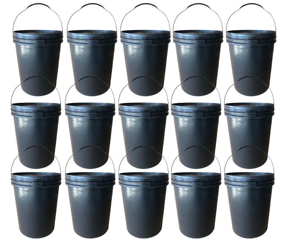 15 X Baldes Pretos De 20 Litros Com Alça Plástica