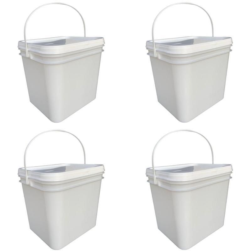 04 X Baldes Retangulares Branco Com Capacidade De 3.6 Litros
