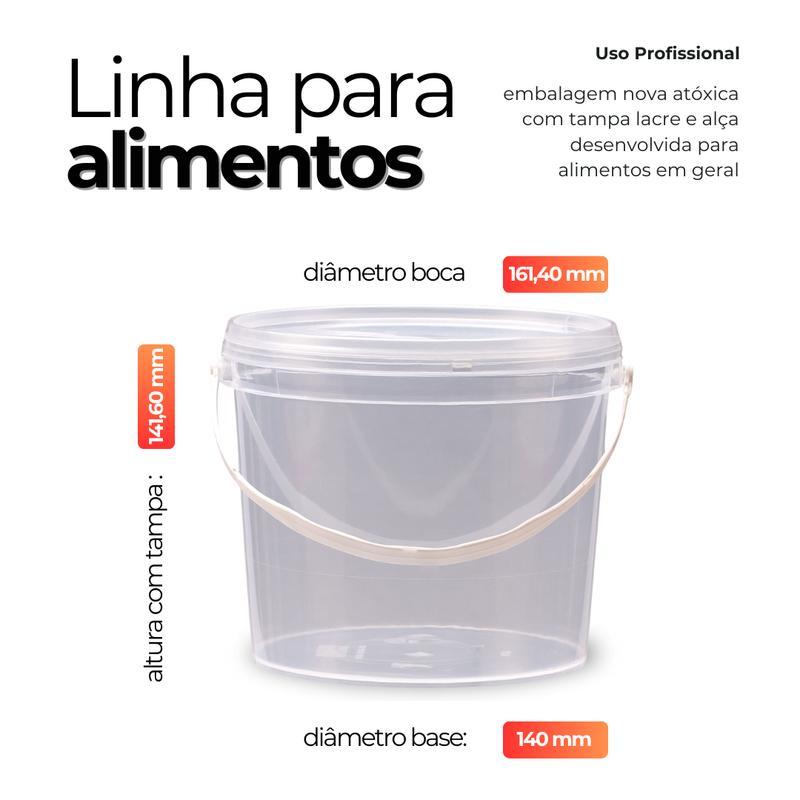 Balde Transparente 2.2 Litros Com Tampa Lacre De Segurança 100% Bpa Free - 20 Peças Comercializamos O Balde Vazio E Sem Impressão O Titulo E O Rótulo Serve Apenas Como Sugestão De Usabilidade Setor Alimentício, Químico E Diversos. Multiuso - Embalagens Com Boa Resistência Em Baixas E Altas Temperaturas E Aprovadas Para Contato Com Alimentos. - Balde Plásticos Rígidos Desenvolvidos E Fabricados Especificamente Para A Indústria Alimenticia, Quimica E Farmaceutica - As Tampas Tem Ótimo Fechamento E São De Fácil Colocação, Seu Desenho Permite Um Empilhamento Seguro Todos Os Processos São Feitos Em Sintonia Com As Suas Exigências, Tanto De Segurança, Durabilidade E Estética. Nesta Compra Voce Vai Receber: 20 X Baldes Transparentes Com Alça Plástica Com Capacidade De 2.2 Litros 20 X Tampas Plastica Transparente Com Lacre De Segurança Balde: Diâmetro Interno Superior 156.50 Mm Diâmetro Interno Inferior 137 Mm Diâmetro Externo Superior 161.40 Mm Diâmetro Externo Inferior 140 Mm Diâmetro Externo Máximo 166.40 Mm Altura Interna 136 Mm Altura Externa 140 Mm Altura Com A Tampa 141.60 Mm Espessura Média Lateral 0.75 Mm Espessura Média No Fundo 0.80 Mm Peso 71 Gramas Tampa: Diâmetro Externo 169 Mm Altura 15.20 Mm Espessura Média De Parede 0.75 Mm Peso 23 Gramas Material Pp Alça: Comprimento: 350 Mm Espessura Media Parede: 0,85 Mm O Balde Transparente De 2.2 Litros Para Alimento Com Tampa Lacre É Um Recipiente Projetado Para Armazenar Alimentos Em Grandes Quantidades. Ele É Fabricado Em Plástico Resistente, (pp) Polipropileno De Alta Densidade, Que É Seguro Para O Contato Com Alimentos. A Forma Redonda Do Balde Permite Que Ele Seja Empilhado Facilmente, O Que Economiza Espaço No Armazenamento. O Tamanho De 2.2 Litros É Adequado Para Armazenar Alimentos Em Grande Quantidade, Tornando-o Uma Opção Popular Para Uso Comercial Em Restaurantes, Padarias, Indústrias Alimentícias, Entre Outros. Seu Volume Real Abaixo Da Tampa É De 2.5 Litros Podendo Chegar Em 2.6 Litros Sem Tampa Até A Borda Do Balde. A Tampa Lacre É Uma Característica Importante Deste Balde, Pois Mantém O Conteúdo Fresco E Protegido De Contaminantes Externos. Possui Um Sistema De Encaixe Que Proporciona Um Fechamento Seguro E Hermético, Impedindo A Entrada De Ar, Poeira, Insetos E Outros Elementos Que Possam Prejudicar A Qualidade Do Alimento. Além Disso, O Balde De 2.2 Litros Transparente Possui Uma Tampa Com Lacre De Segurança Que É Facilmente Higienizável, Podendo Ser Lavado Com Água E Sabão E Reutilizado Diversas Vezes. Isso O Torna Uma Opção Econômica E Sustentável Para O Armazenamento De Alimentos. Alguns Dos Principais Benefícios Do Balde 2.2 Litros Transparente Para Alimento Com Tampa Lacre Incluem: - Alta Capacidade De Armazenamento: Com Capacidade De 2.2 Litros, Este Balde É Ideal Para Armazenar Grandes Quantidades De Alimentos. - Proteção Contra Contaminação: A Tampa Com Lacre De Segurança É Uma Barreira Eficaz Contra Insetos, Poeira E Outros Contaminantes Que Possam Prejudicar A Qualidade Do Alimento. - Facilidade De Transporte: O Balde É Leve E Fácil De Transportar, Permitindo Que O Alimento Seja Movido De Um Local Para Outro Com Facilidade. Fácil Visibilidade Devido Sua Tampa Ser Transparente. Em Resumo, O Balde Transparente De 2.2 Litros Para Alimento Com Tampa Lacre É Um Recipiente Prático E Seguro Para O Armazenamento De Alimentos Em Grandes Quantidades. Não Espere Mais Para Garantir A Durabilidade E A Frescura Dos Seus Alimentos Adquira Agora O Balde Transparente 2.2l Com Tampa Lacre E Tenha Mais Praticidade E Segurança. Nastripack,transparência,vedação,armazenamento,empilhamento.