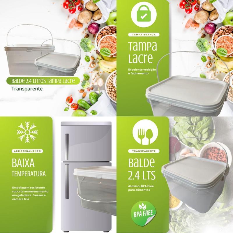 o Balde Retangular Transparente De 2.4 Litros Com Tampa Lacre É Um Recipiente Projetado Para Armazenar Alimentos Em Grandes Quantidades. A Transparência Do Balde Permite Visualizar Facilmente O Conteúdo Interno, Facilitando Encontrar O Que Precisa Rapidamente.