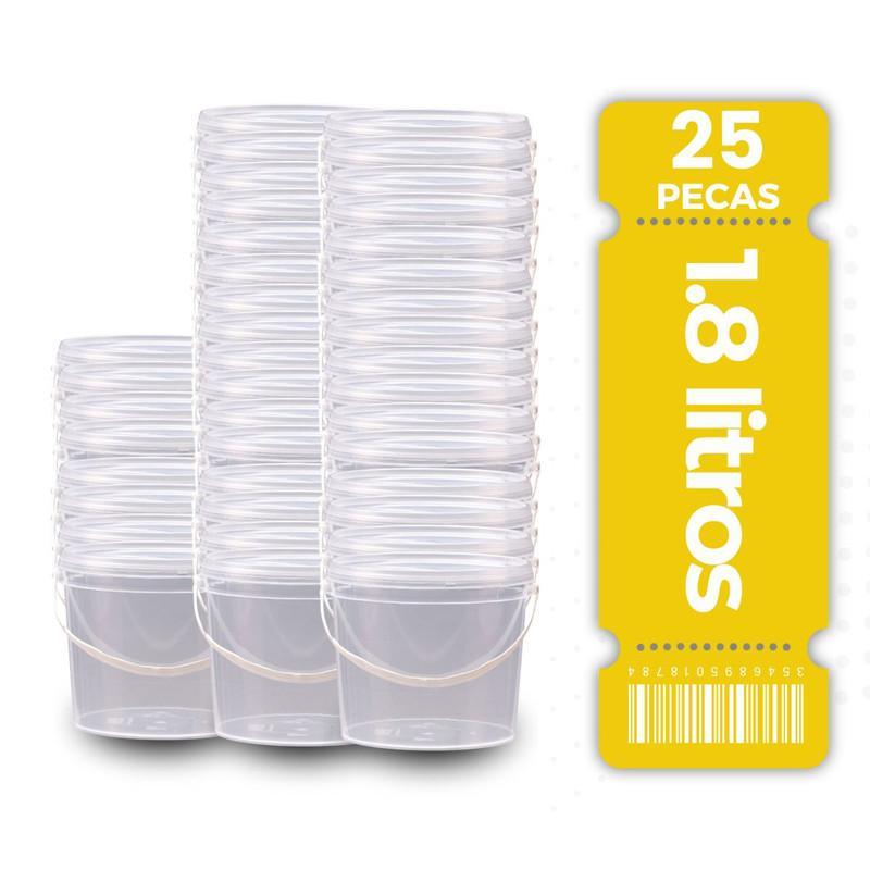 25 X Baldes Transparentes Com Alça Plástica De 1.8 Litros