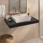 Bancada Yes 80cm Com Vidro Com Furo E Cuba Charlô Preto.