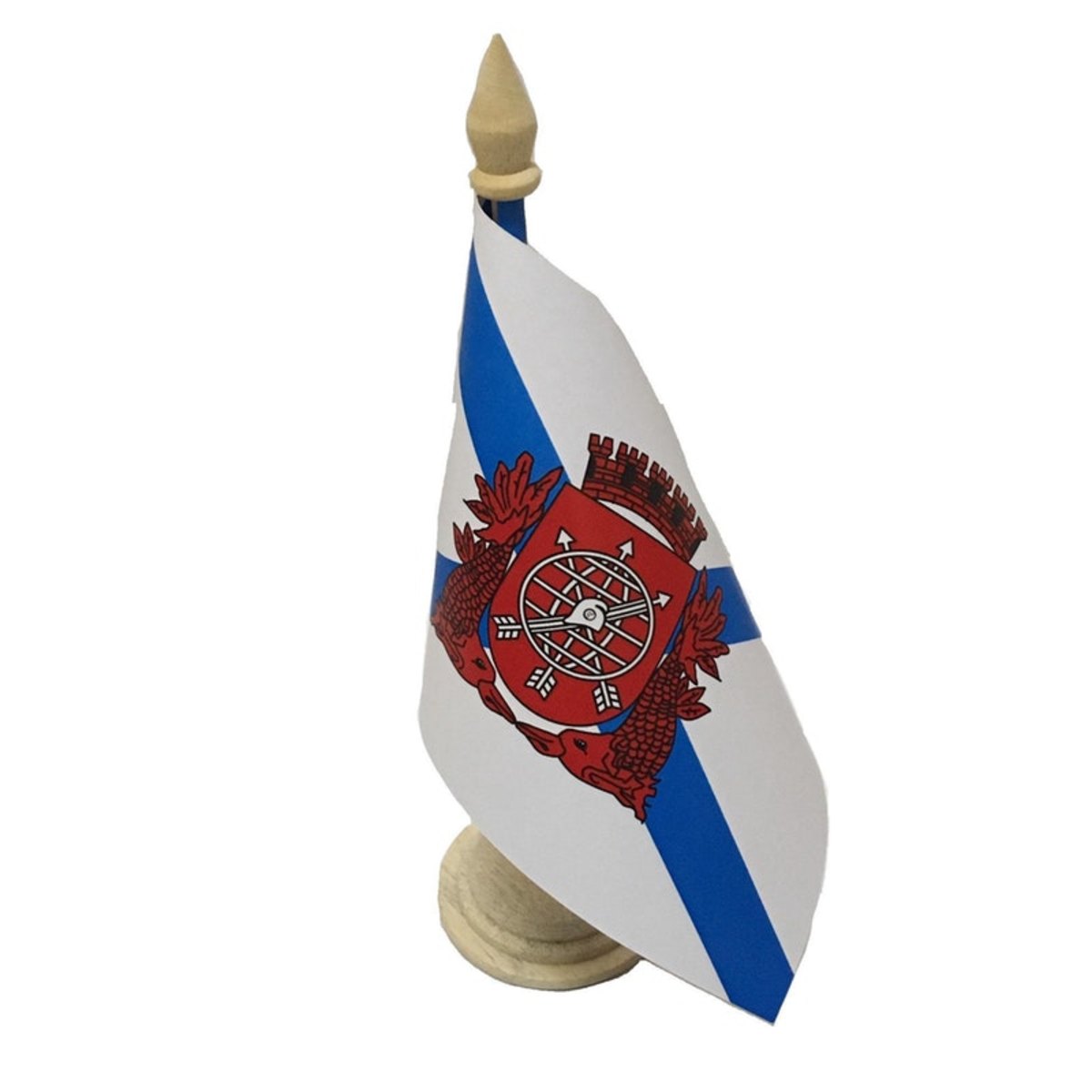 Bandeiras de mesa com mastro de madeira, excelente qualidade e acabamento..Ideais para decoração, reuniões e presente...Dimensões: .Altura do mastro: 30 cm .Base: 3,5 cm de diâmetro.Bandeira: 19 cm de comprimento x 13 cm de largura..Mastro: madeira de reflorestamento.Bandeira impressa em alta definição em papel couchê de alta gramatura .Impressa frente e verso