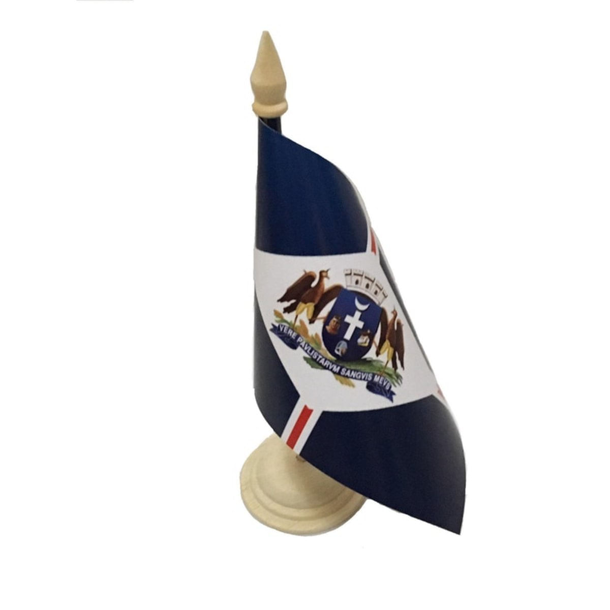 Bandeiras de mesa com mastro de madeira, excelente qualidade e acabamento..Ideais para decoração, reuniões e presente...Dimensões: .Altura do mastro: 30 cm .Base: 3,5 cm de diâmetro.Bandeira: 19 cm de comprimento x 13 cm de largura..Mastro: madeira de reflorestamento.Bandeira impressa em alta definição em papel couchê de alta gramatura .Impressa frente e verso