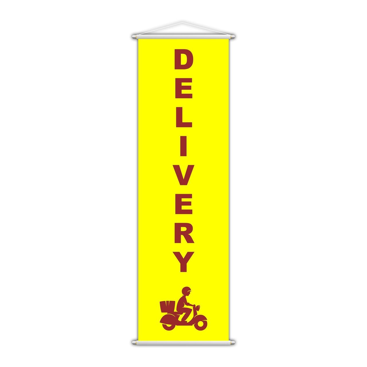 Banner Delivery Cliente Amarelo Serviço 100x30cm tamanho: banner Com Medida Total De 100x30cm. acabamento: bastões De Madeira + Corda Na Parte Superior.