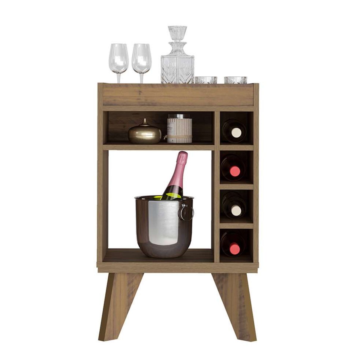 Que tal o Bar Drink?Um móvel para acomodar as suas bebidas favoritas e simplificar os seus momentos de confraternização: esse é o Bar Drink! Com diferentes nichos, ele tem suporte para garrafas deitadas, copos, baldes de gelo e até aqueles enfeites que ajudam a dar uma nova cara para o ambiente. Outro detalhe legal da peça é a estrutura que combina caixaria robusta + pés alongados + cor básica para garantir que a decoração do seu espaço só saia ganhando com a presença dele. Quanta coisa boa para a sua casa, né? ,)