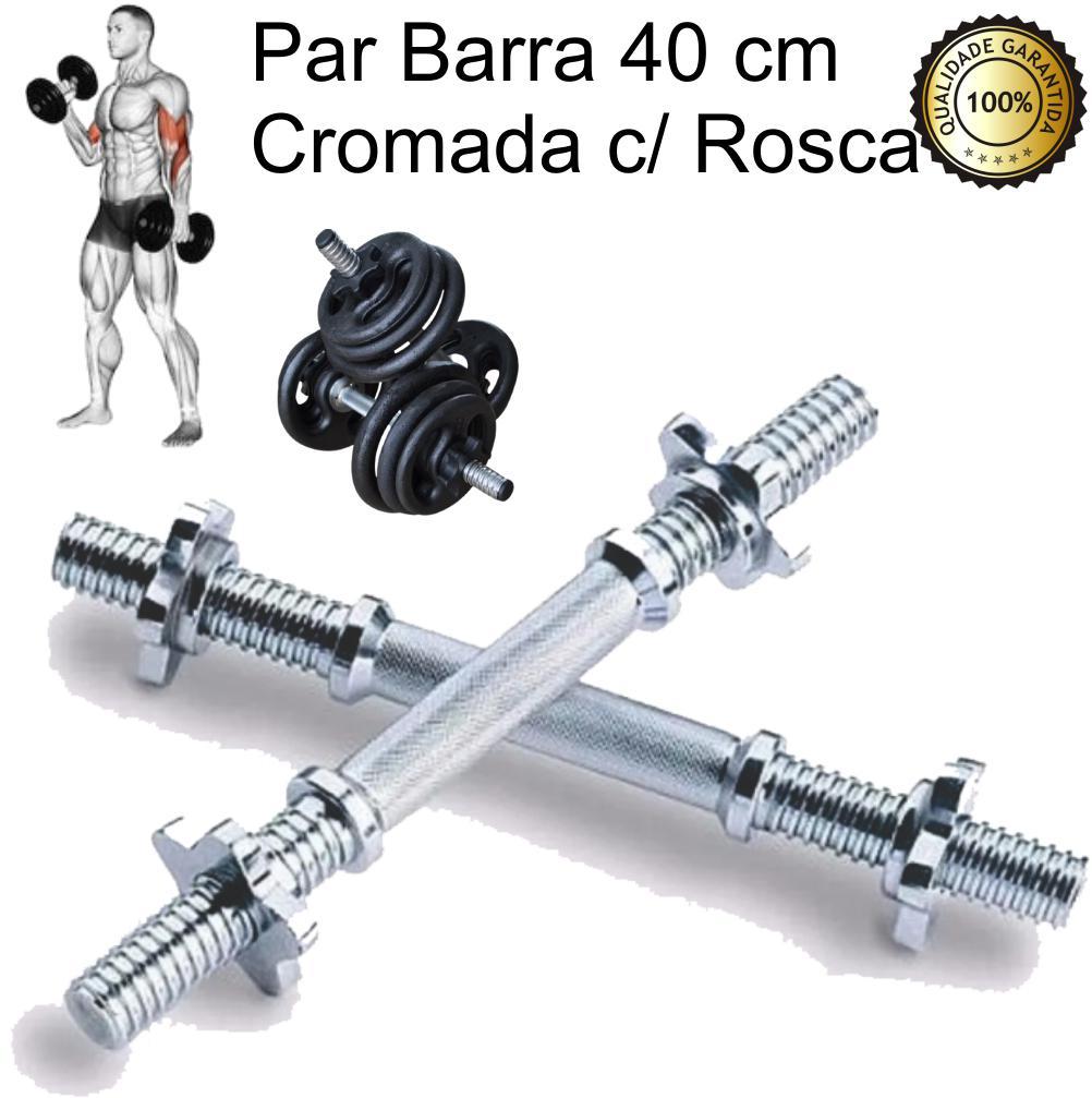 - Pacote Com 1 Par De Barras Halter 40cm Maciça Cromada Com Roscaser Negativado.