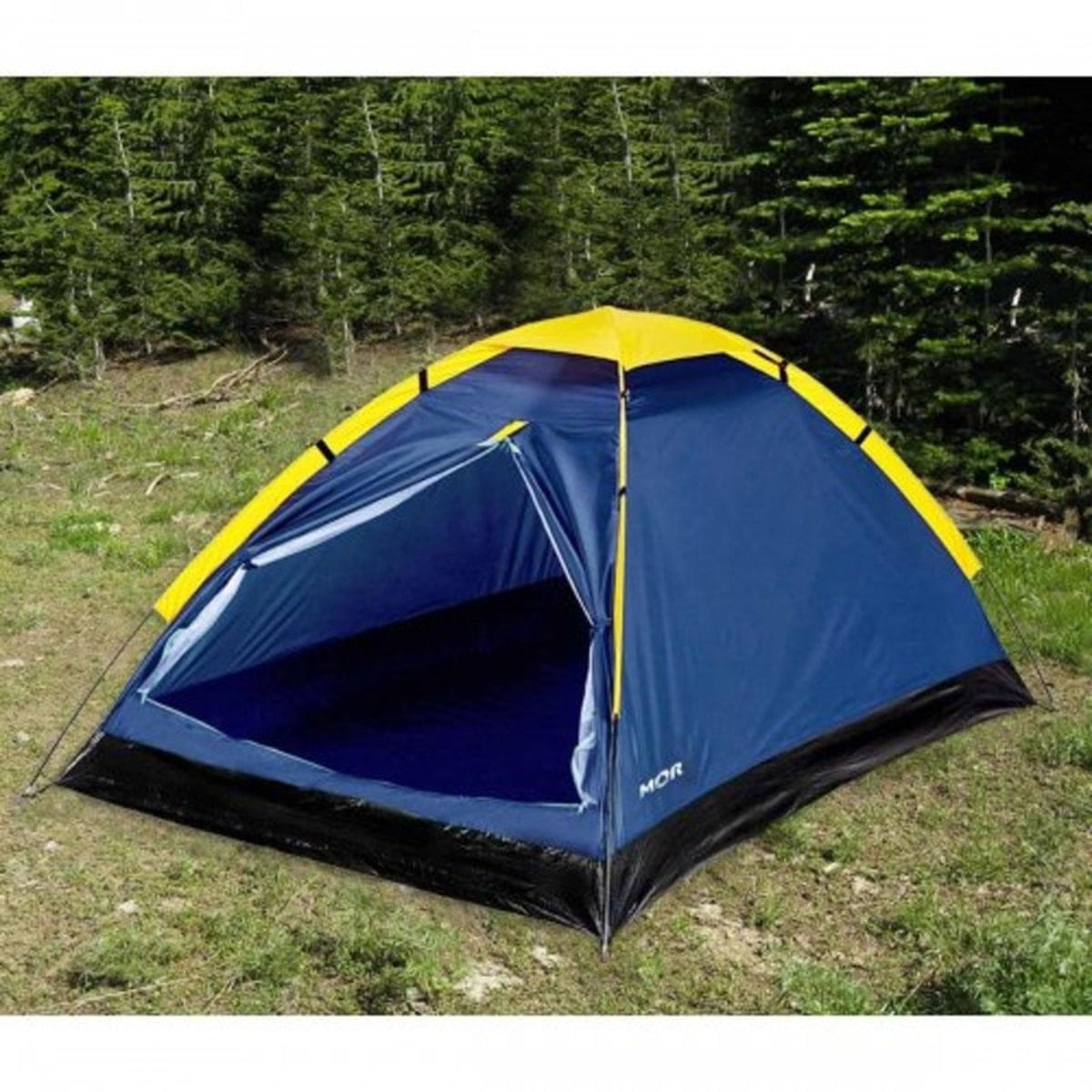 Barraca Camping Iglu 3 Pessoas Mor. .São fáceis de montar. Possuem como característica peso e volume reduzidos, devido a sua estrutura em varetas de fibra de vidro interligadas. São confeccionadas em poliéster, com a costura invertida entre o piso e o dormitório, evitando vazamento de água para o interior da barraca. O piso é confeccionado em polietileno. Possui porta dupla com tela, mosquiteiro e instruções ilustradas para montagem...Especificação:.Tecido: 100% poliéster. .Piso: 100% polietileno. .Varetas: 100% fibra de vidro. .Proteção contra vazamentos: 300mm de coluna d'água..Peso: 1,78 Kg.Dimensões: 2,05 metros de comprimento, 1,60 metros de largura, 1,15 metros de altura..Cor do produto: Azul e amarela..FPS 100..Acompanha sacola de transporte..Mosquiteiro na porta e no teto. Local para pendurar lanterna dentro da barraca. ..Informações técnicas:.Conteúdo da embalagem: 1 barraca para 3 pessoas..Fabricante: Mor. .Garantia: 3 meses de garantia contra defeito de fabricação..Em mais de 50 anos de atuação, a Mor conquistou não só o mercado brasileiro, como o mercado internacional, com reconhecimento pela qualidade, inovação e conforto que oferece nesse produto e em todos que fabrica.
