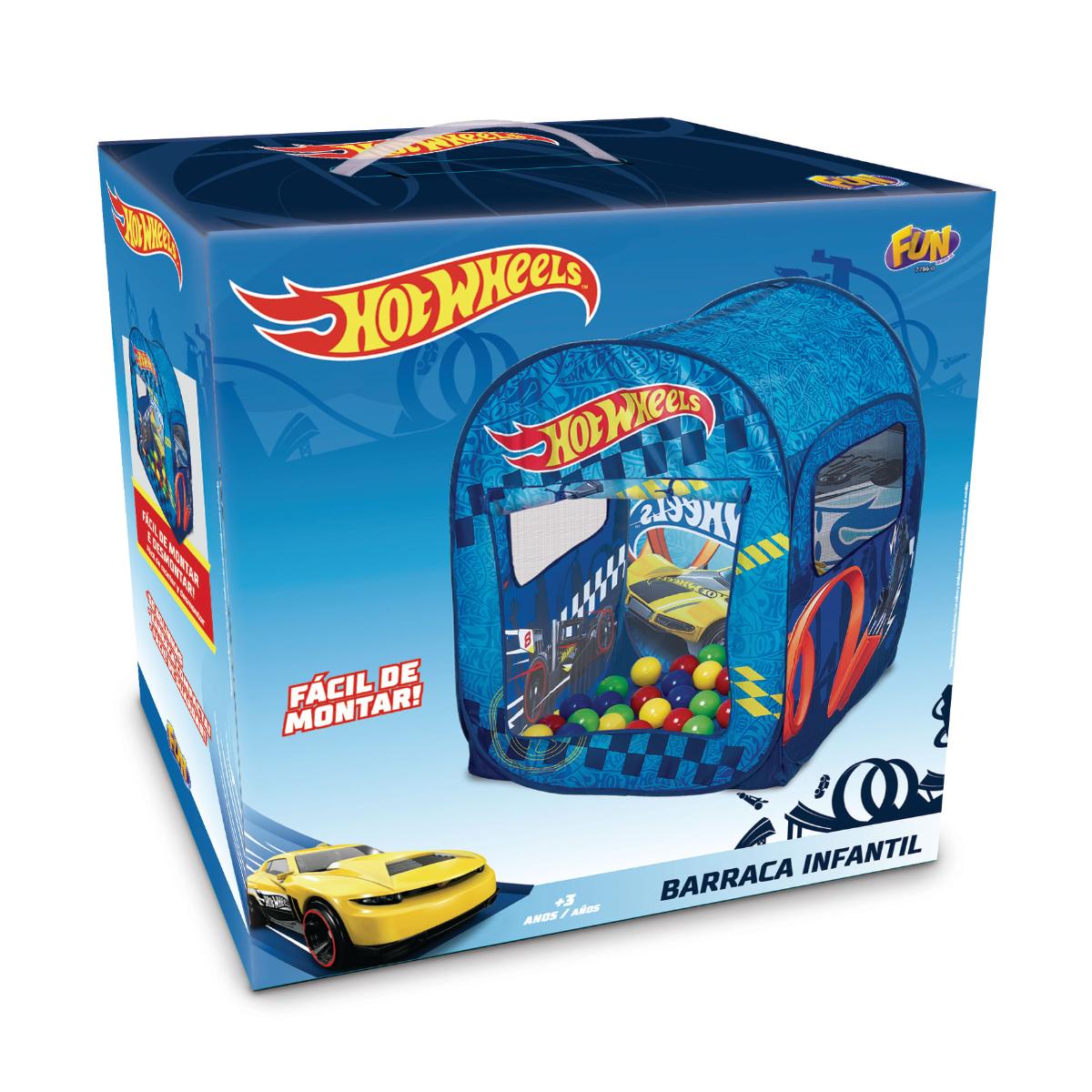 Os meninos adorarão a barraca Hot Wheels, é pratica para abrir e fechar e levar para qualquer lugar. Acompanha 50 bolinhas coloridas e uma bolsa para transporte radical.