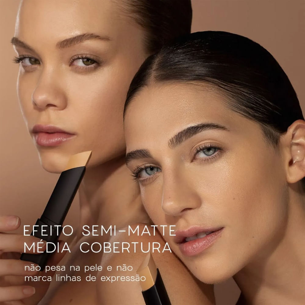 foundation Stick Proporciona Uma Maquiagem Uniforme E Super Natural, Perfeita Para Ser Usada Desde O Look Do Dia A Dia Até A Superprodução Da Noite. Com Acabamento Semi-mate E Cobertura Média, Ela Fica Super Confortável, Não Marca As Linhas Finas E Disfarça Pequenas Imperfeições. E Você Ainda Pode Contar Com A Sua Longa Duração Para Uma Maquiagem Que Permaneça Por Muito Tempo. Seu Formato Triangular É Ótimo Para Encaixar Nos Ângulos Da Face E Chegar Nos Menores Cantos Do Rosto. Sua Fórmula Conta Com Todo O Poder Do Óleo De Jojoba E De Rícino, Além Dos Benefícios Da Vitamina E E Do Ácido Hialurônico. Esses Ingredientes, Juntos, Proporcionam Um Produto Cremoso E Fácil De Espalhar Na Pele.