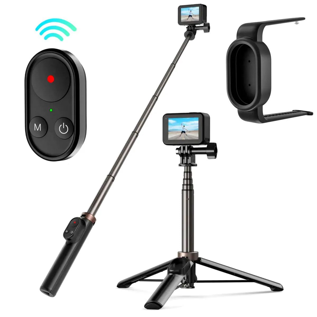 Com Este Kit Você Terá A Liberdade De Capturar todas As Suas Aventuras em Diferentes ângulos Com Este bastão De Selfie Com Controle Remoto para Câmeras De Ação E Celulares. Ele Foi Fabricado Em alumínio, Material Altamente Forte E Confiável Que Fornece Maior Segurança Para Sua Câmera, resistência e durabilidade.