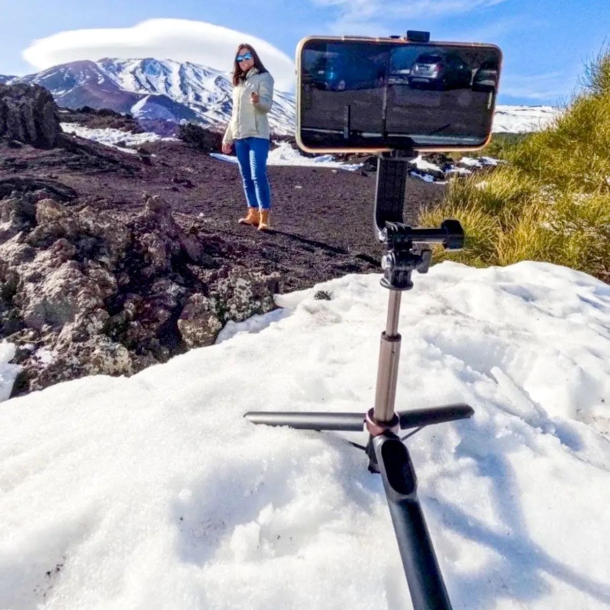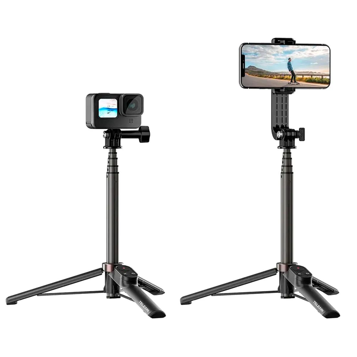 Ele Conta Também Com Um tripé Extensível Integrado que Permitirá Com Que Grave Vídeos E Tire Fotos À Longa Distância Com Sua Gopro Ou Celular Sem Precisar Segurar O Bastão. O Seu Comprimento mínimo De 15cm e O máximo De 50cm, Quando No Modo Tripé, Possibilitando Fotos Mais Incríveis E Únicas Em Diferenciados Ângulos.